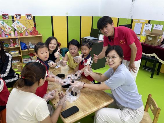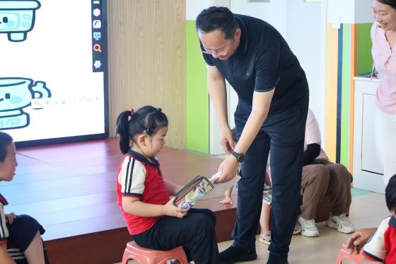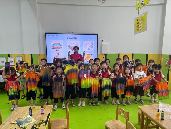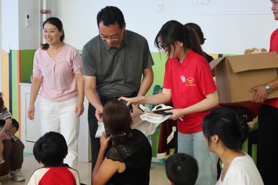 揭牌仪式后,韩千钧与董国军一行随即走访了曹集幼儿园,实地考察“归乡筑梦,同心赢未来”中华文脉传承团暑期社会实践活动的开展情况,并为乡村儿童送上暖心物资。活动现场,志愿者们结合专业优势,精心设计了健康课堂、扎染技艺体验、共绘百米画卷等丰富内容,生动传播中华优秀传统文化,有效激发了孩子们的学习兴趣,在他们心中根植了对民族文化的认同感、自豪感和归属感。这份被唤醒的文化自信,将成为伴随孩子们成长的宝贵财富。