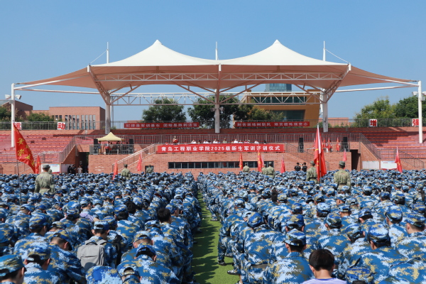 9月2日上午,青岛工程职业学院在体育场举行2025级军事技能训练开训仪式。92667部队副营长许衍程,青岛工程职业学院党委书记李群,党委副书记王栽毅,学院党委委员、纪委书记、监察专员钱福强,党委委员、副院长韩千钧,党委委员、副院长高桥出席开训仪式。全体军训教官、相关部门(单位)党政负责人、全体新生辅导员、全体2025级参训学生参加。