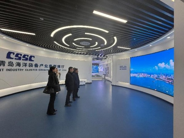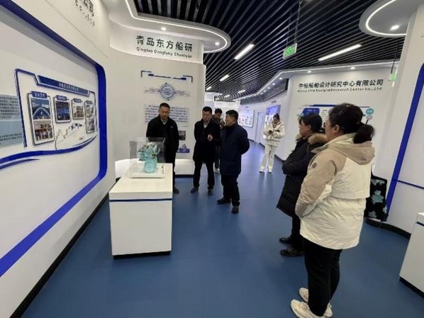在闫广利和尹亮的陪同下,学院一行参观了中国船舶集团青岛海洋装备产业集群展厅,系统了解了海装院的发展历程、核心业务布局以及在海洋工程装备、高技术船舶等领域的创新成果与最新技术装备。通过现场讲解与实物展示,教师们对我国海洋装备产业的前沿动态与发展趋势有了更为直观和深刻的认识。
