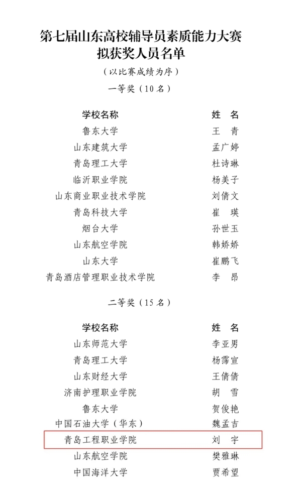 近日,由山东省委教育工委主办的第七届山东高校辅导员素质能力大赛圆满落幕。该项赛事每两年举办一届,是山东省内级别最高、覆盖面最广、考核最全面的高校辅导员职业能力赛事,为我省本科与专科层次院校的辅导员提供了同台竞技、交流切磋的宝贵平台。