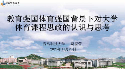 为提升学院体育教师专业素养与育人能力,拓展体育大思政实践路径,破解体育课程与思政融合难题,进一步推动学院体育课程思政建设,近日,学院邀请青岛科技大学体育学院教授、青岛高校体育协会会长葛振营到校,开展主题为《教育强国体育强国背景下对大学体育课程思政的认识与思考》专题讲座。